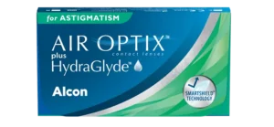 AIR OPTIX™ plus HydraGlyde™ para AstigmatismoLos lentes de contacto AIR OPTIX™ plus HydraGlyde™ para astigmatismo están diseñados para proporcionar una visión cómoda, clara y estableDisponen de tecnología SmartShield™ ayuda a resistir los depósitos, favorece una película lagrimal estable y mantiene la humectación para proporcionar una mayor duración de la superficie del lente.El diseño de los lentes Precision Balance 8|4™ utiliza dos puntos de anclaje para la estabilización, proporcionando una excelente agudeza visual durante todo el mes. Presentacion: caja x6 unidades – reemplazo mensual Consultar promos vigentes!